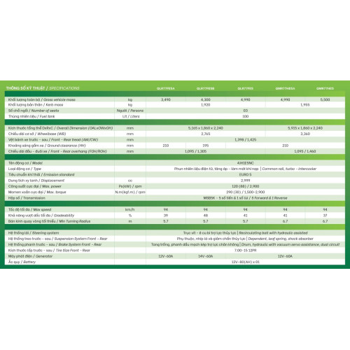 - Hệ thống phanh trước – sau Tang trống, phanh dầu mạch kép trợ lực chân không